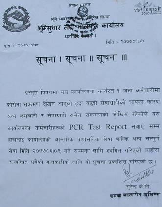 कर्मचारीमा संक्रमण पुष्टि पछि मालपोत कार्यालय ९ गतेसम्मका लागी सिल