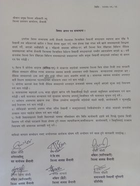 नेबिसंघ,अनेरास्वबियु ,अखिल क्रान्तिकारी लगाएत ६ बिधार्थी संगठनहरुले संयुक्त रुपमा बिभिन्न माग राख्दै प्रमुख जिल्ला अधिकारी बोहरालाई ज्ञापन पत्र बुझाएको नेबि संघका कैलाली अध्यक्ष भेष बमले बताए ।