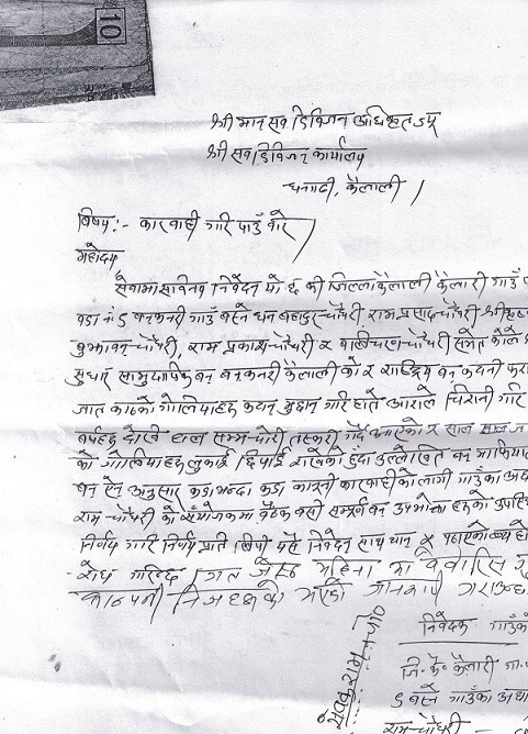 असोज २० गते बसेको स्थानीयको भेलापछि काठ तस्करी तथा बन अतिक्रमण गर्नेहरुको नाम किटान गरेर उजुरी दिएको भएपनि सव डिभिजन बन कार्यालय धनगढी मौन बसेको स्थानीयहरुले आरोप लगाएका छन् ।