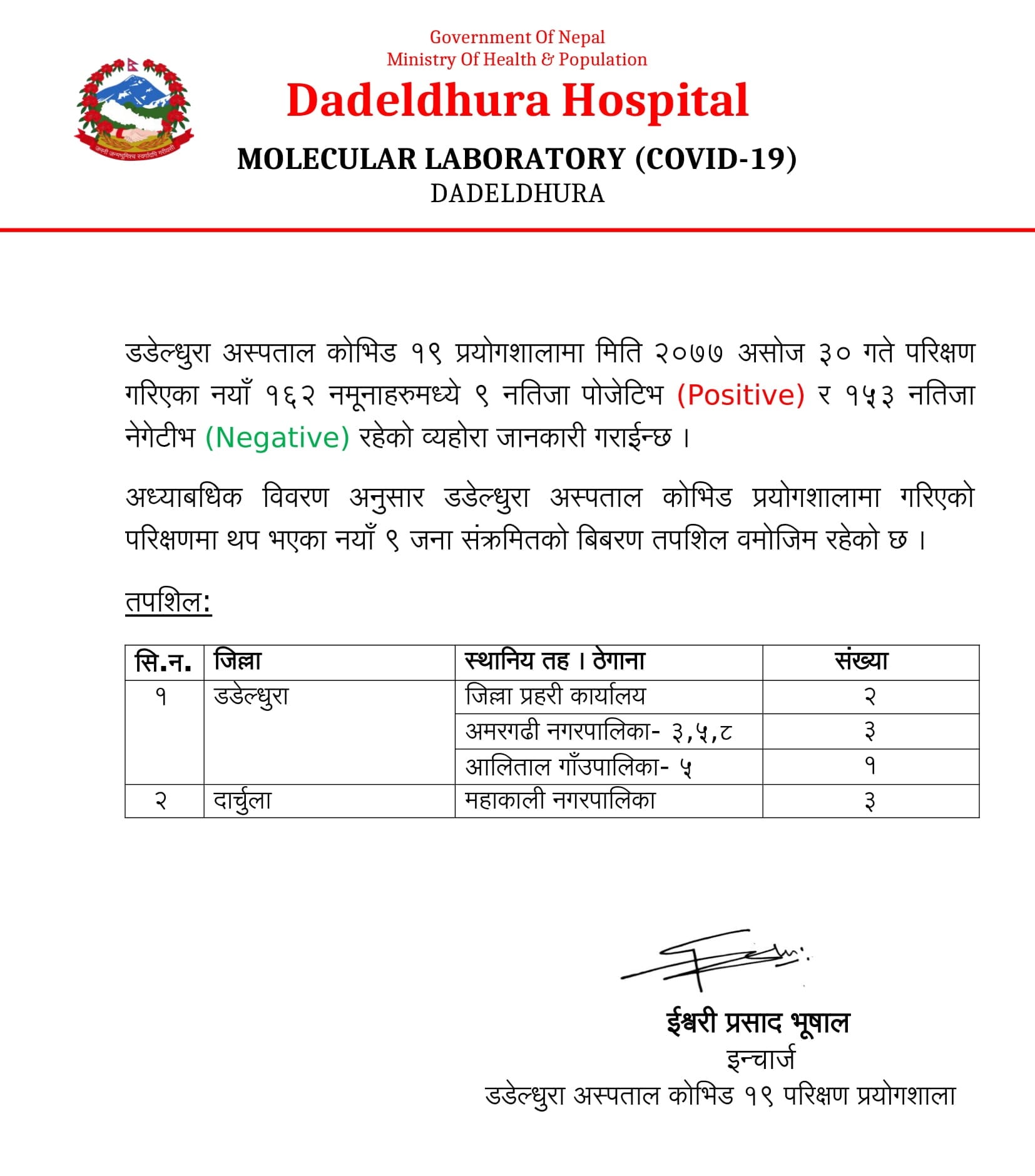 डडेल्धुरा अस्पतालको प्रयोगशालामा ९ जनामा कोरोना संक्रमण पुष्टि