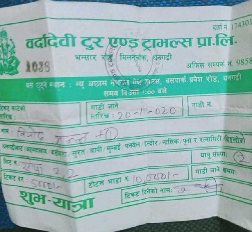 मंसिर ५ गतेका दिन दिउँसो २ बजे गाडीमा हिँडेका यात्रुहरु अहिले भारतको पुनास्थित बाउदानमा अलपत्र परेका हुन् । धनगढीबाट भारतको बेङ्लोर जाने भन्दै बर्दादेवी टूर एण्ड ट्राभल्सबाट टिकट काटेका ३३ जना र रत्नागिरी जाने ३७ जना यात्रुहरु पुनाको बाउदानमा अलपत्र परेका हुन् ।