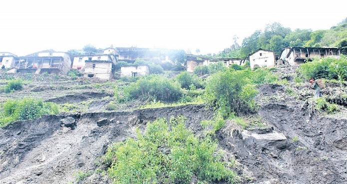 गाउँभन्दा तल निर्माण गरिएको सडकका कारण घरहरू भासिएको देखिएको छ । ‘सडकले गाउँको तल्लो भाग खनेकाले गाउँ नै भासिएको रहेछ,’ पहिरो प्रभावित क्षेत्रको स्थलगत निरीक्षणपछि फर्केका गाउँपालिकाका रोजगार संयोजक बिर्ख पाण्डेले भने, ‘गाउँ नै चिराचिरा परेर भासिएको छ । कुनै घर भत्किसकेका छन् । कसैका घर बाँगाटिँगा भएका छन् ।’ जमिन भासिएर कमजोर भएपछि गाउँको बीचभाग भएर बग्ने खहरे खोलाले पनि कटान गरेकाले झन् बढी क्षति भएको उनले बताए । ‘ठूलो वर्षा भयो भने एकै पटक गाउँ नै बगाउने अवस्था छ,’ उनले भने । सुदूरपश्चिम प्रदेश सरकारको लगानीमा भर्खर निर्माण हुँदै गरेको रुगिन–बिच्छिया पहुँचमार्गका कारण गाउँमा पहिरो खसेको पाण्डेले बताए ।