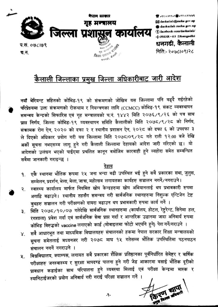 कैलालीमा स्मार्ट लकडाउन, आज रातिदेखि लागू हुने (आदेशसहित)