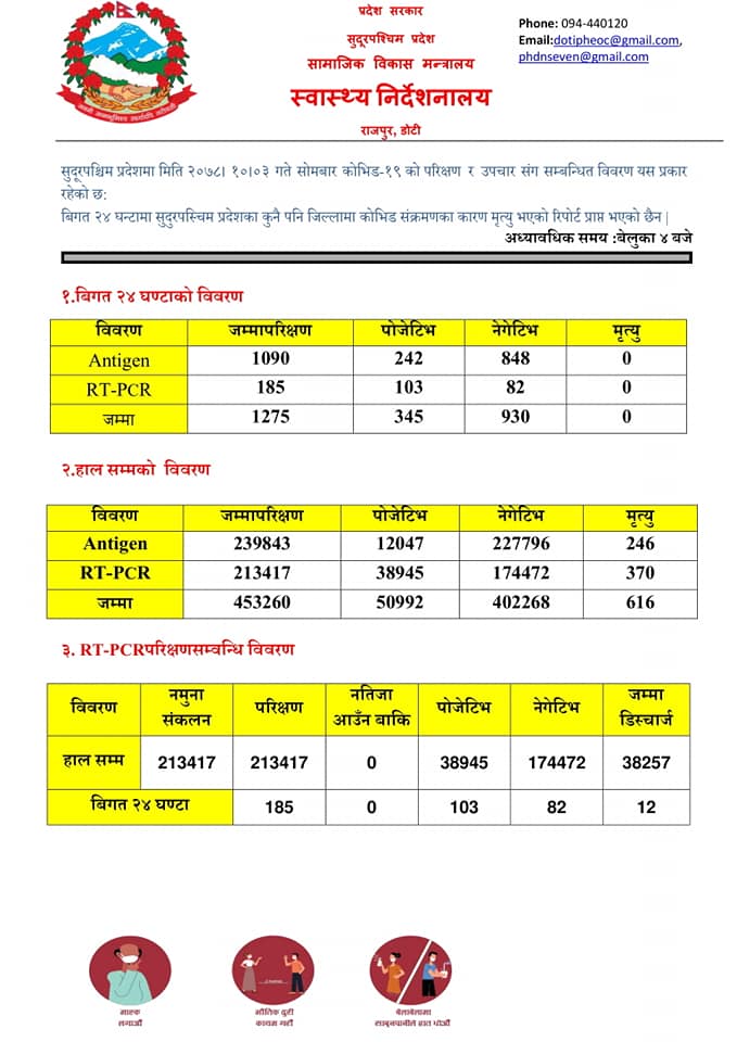 सुदूरपश्चिम प्रदेशमा थप ३ सय ४५ जनामा कोरोना संक्रमण पुष्टि