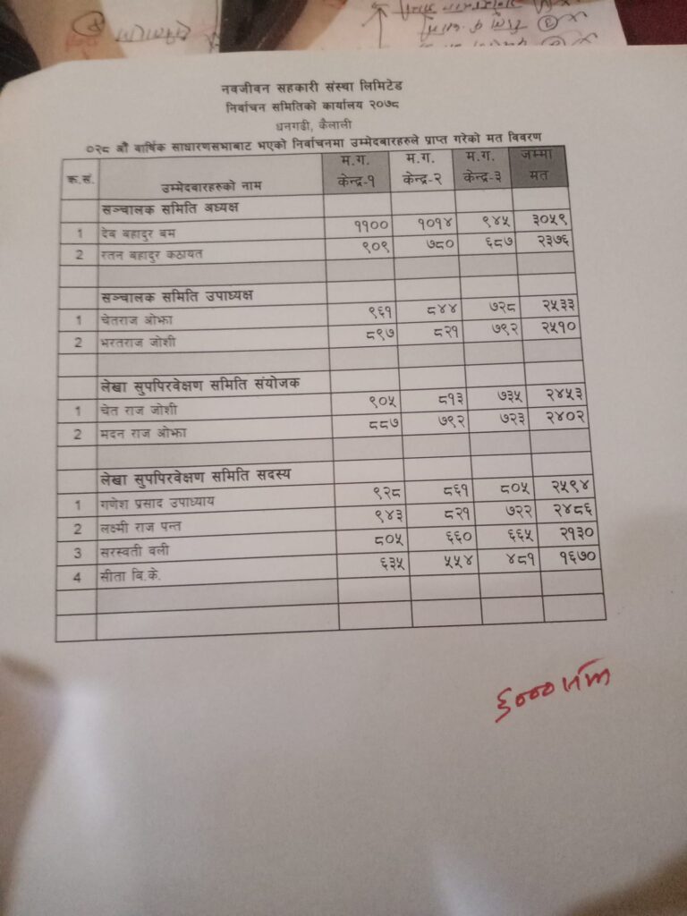 नवजीवन सहकारी चुनाव : हाल सम्म ६ हजार मतगणना हुँदा बमको अग्रता कायमै
