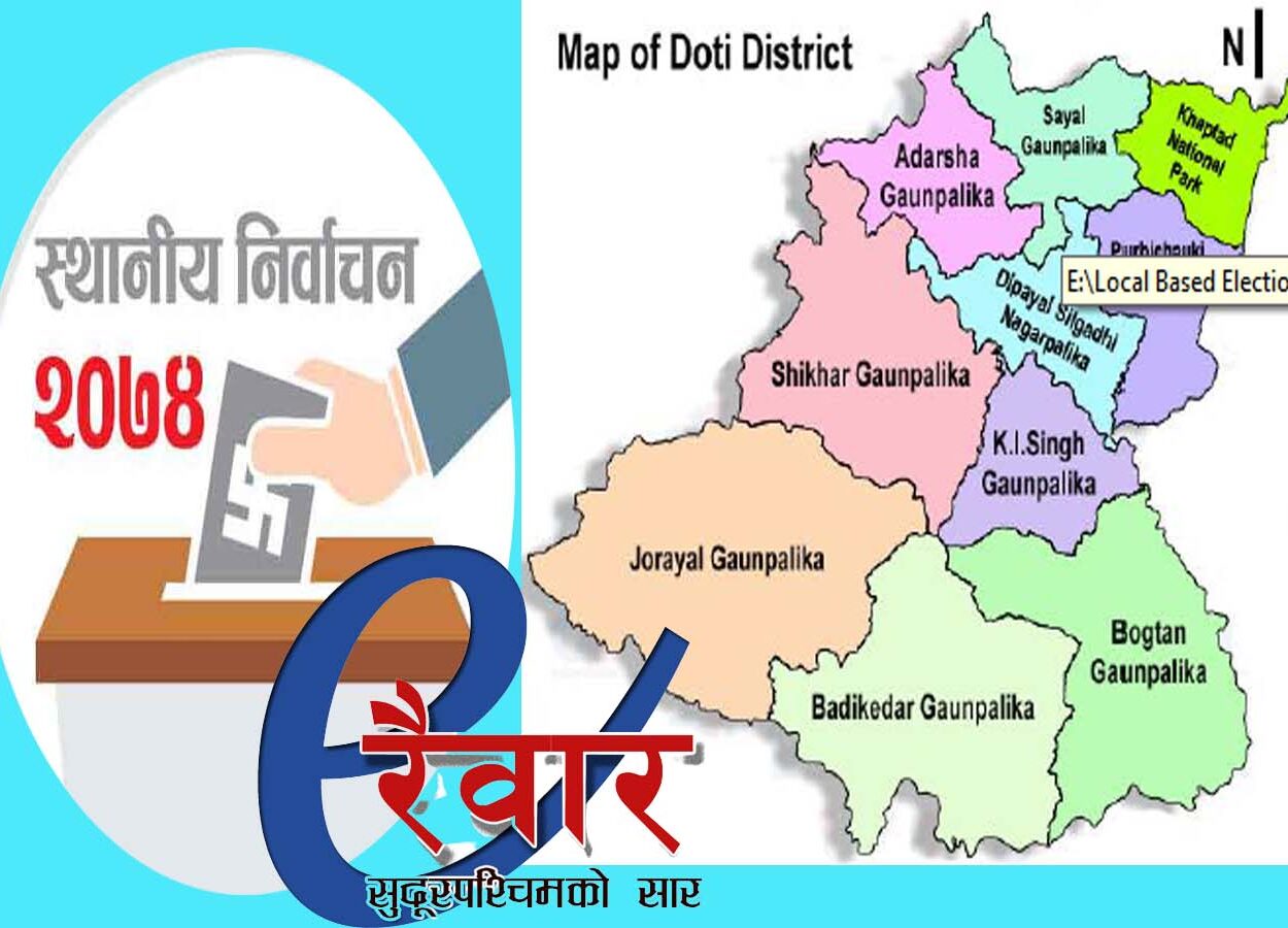 डोटीः नेपाली कांग्रेसको परम्परागत गढ मानिने डोटी जिल्लामा २०७४ को स्थानीय तह निर्वाचनमा अप्रत्यासित नतिजा निस्कियो । नेकपा एमालेले जिल्लाका नौ मध्ये ५ पालिकामा जीत निकाल्दा कांग्रेस तीन पालिकामैं सीमित हुनपुग्यो । एकमा माओवादी केन्द्र विजयी भयो ।