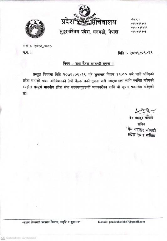 धनगढी । सुदूरपश्चिम प्रदेश सभाको बैठक अनिश्चित समय सम्मको लागि स्थगित गरिएको छ। आज बस्ने भनिएको बैठक अर्को सूचना जारी नभए सम्मको लागि सूचना टाँस गरि स्थगित भएको हो ।