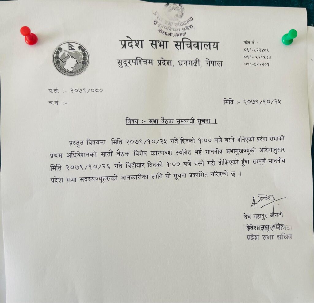 सुदूरपश्चिम प्रदेश सभाको बैठक स्थगित, भोलि दिउँसो १ बजे बस्ने