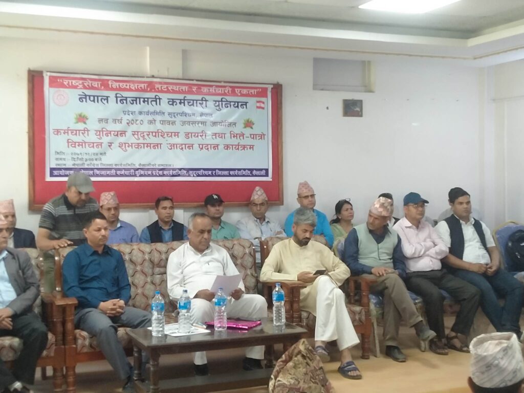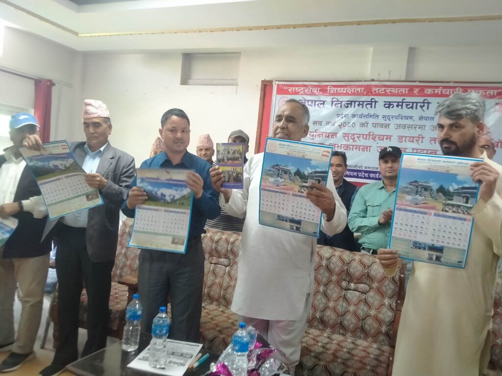 नेपाल निजामती कर्मचारी युनियनका केन्द्रीय उपाध्यक्ष तथा सुदूरपश्चिम प्रदेश अध्यक्ष धर्मबहादुर देउवाको अध्यक्षतामा भएको कर्मचारी युनियन प्रदेश डायरी तथा भित्ते पात्रो विमोचन कार्यक्रममा प्रमुख अतिथि प्रदेश सभा सदस्य प्रकाशबहादुर बम रहेका थिए । कार्यक्रममा बोल्दै संघीय निजामती सेवा ऐनको मस्यौदा कर्मचारीको हित विपरीत भएका दफाहरु संशोधन नभएमा कडा आन्दोलन गर्ने चेतावनी दिँदै केन्द्रीय उपाध्यक्ष तथा प्रदेश अध्यक्ष देउवाले भने,‘संघीय निजामती सेवा ऐनको मस्यौदालाई यथाशक्य संशोधन गरी कार्यान्वयनमा ल्याउन आग्रह गर्दछौँ, यदि त्यसो नगरिए हामी कडा आन्दोलनमा उत्रनेछौँ ।’